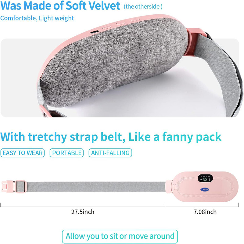 این دستگاه برای تسکین دردهای دوران قاعدگی (پریودی) طراحی شده است و به راحتی می تواند در ناحیه شکم و یا کمر قرار بگیرد. این محصول دارای انواع حالت درمانی می باشد که اولی سیگنالی(الکتریکی) که به صورت پالس به ناحیه مورد نظر است و دومی به صورت گرمایشی که دارای پد های گرم شونده است. حالت سوم هم ارسال امواج آرامش بخش از نوع مادون قرمز میباشد. ضمنا می توانید همزمان با پرداختن به امور روزانه و کاری یا ورزش از ماساژی گرم و دلچسب لذت ببرید و دردهای خود را تسکین دهید. طراحی این محصول به صورت ایمن است و اگر به هر دلیلی حرارت از حد مجاز بالاتر رود دستگاه بصورت اتوماتیک خاموش میگردد. این ماساژور دارای انواع حالات متفاوت ماساژ بوده و توان حرارتی مناسبی دارد که در 3 مرحله میتوان آن را کاهش یا افزایش داد. همچنین دارای چندین حالت ماساژ الکتریکی در چندین سطح قدرت است.ماساژ شکم یک روش درمانی ملایم و غیر تهاجمی است که تاثیرات آرامش بخشی و التیام بخشی برای برخی افراد دارد.این ماساژور برای درمان انواع مختلفی از بیماریها، به ویژه اختلالات مربوط به شکم مانند مشکلات گوارشی، یبوست و نفخ شکم هم به کار میرود.