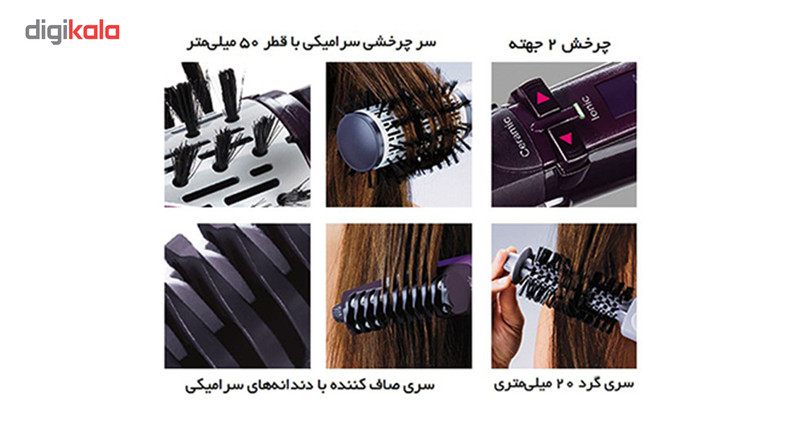 سشوار چرخشی «2736E» تولید شرکت «بابیلیس» (Babyliss)، دارای سریهای مختلف است که هرکدام کاربردهای متفاوتی دارند. برس گرد 50 میلیمتری و 20 میلیمتری برای حجمدادن و حالتدارکردن موها استفاده میشوند. برای صاف و خشککردن موها میتوان سریهای دندانهدار و متمرکزکننده را به کار برد. برس 50میلیمتری گرد و سری دندانهدار از جنس سرامیک ساخته شدهاند که در برابر حرارت مقاومت زیادی دارد. ویژگی دیگر سرامیک پخش یکسان دما در تمام قسمتهاست. 2736SDE وزن زیادی ندارد؛ بنابراین دردستگرفتن آن هنگام حالتدادن موها بسیار آسانتر میشود. فناوری پیشرفتهی استفادهشده در این محصول، تولید یون است. این فناوری به حفظ چربی داخل تارهای مو کمک کرده و از آسیبدیدگی موها جلوگیری میکند؛ همچنین با تولید میلیونها یون منفی و شکستهشدن سریعتر مولکولهای آب، موها با سرعت بیشتری خشک میشوند؛ ضمن اینکه جذب این یونها به نرمی و لطافت تارهای مو میافزاید. محل اتصال سیم بهصورت چرخشی است که این ویژگی بهراحتتر حرکتدادن سشوار کمک میکند. با استفاده از تنظیمات مختلف دما و سرعت میتوان موهای خشک و مرطوب را راحتتر صاف کرد یا حالت داد و به کمک باد سرد میتوان حالت موها را تثبیت کرد.